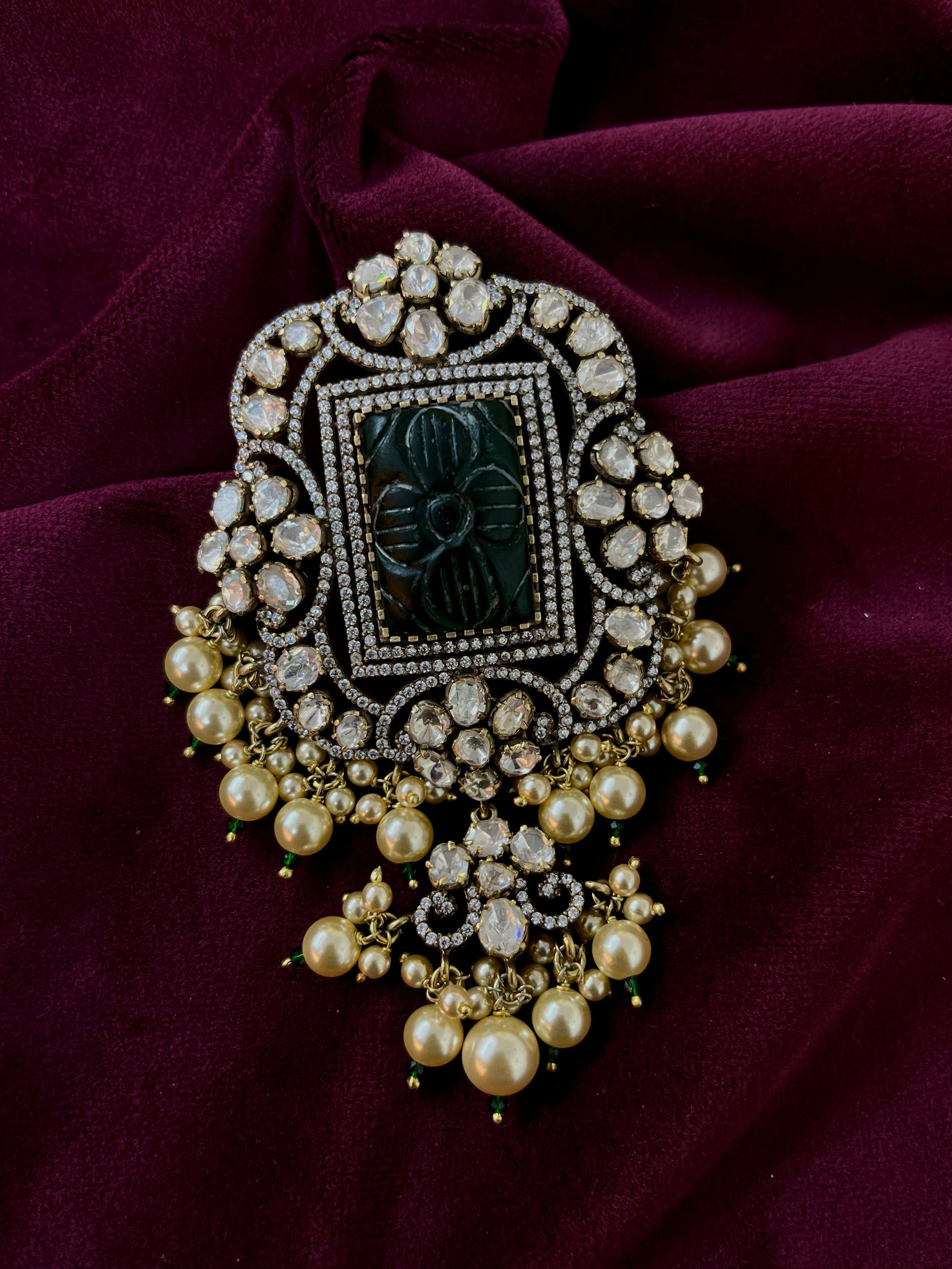 Silver 92.5 Moissanite Pendant with Precious & Semi-Precious Beads Hanging & with 92.5 marking