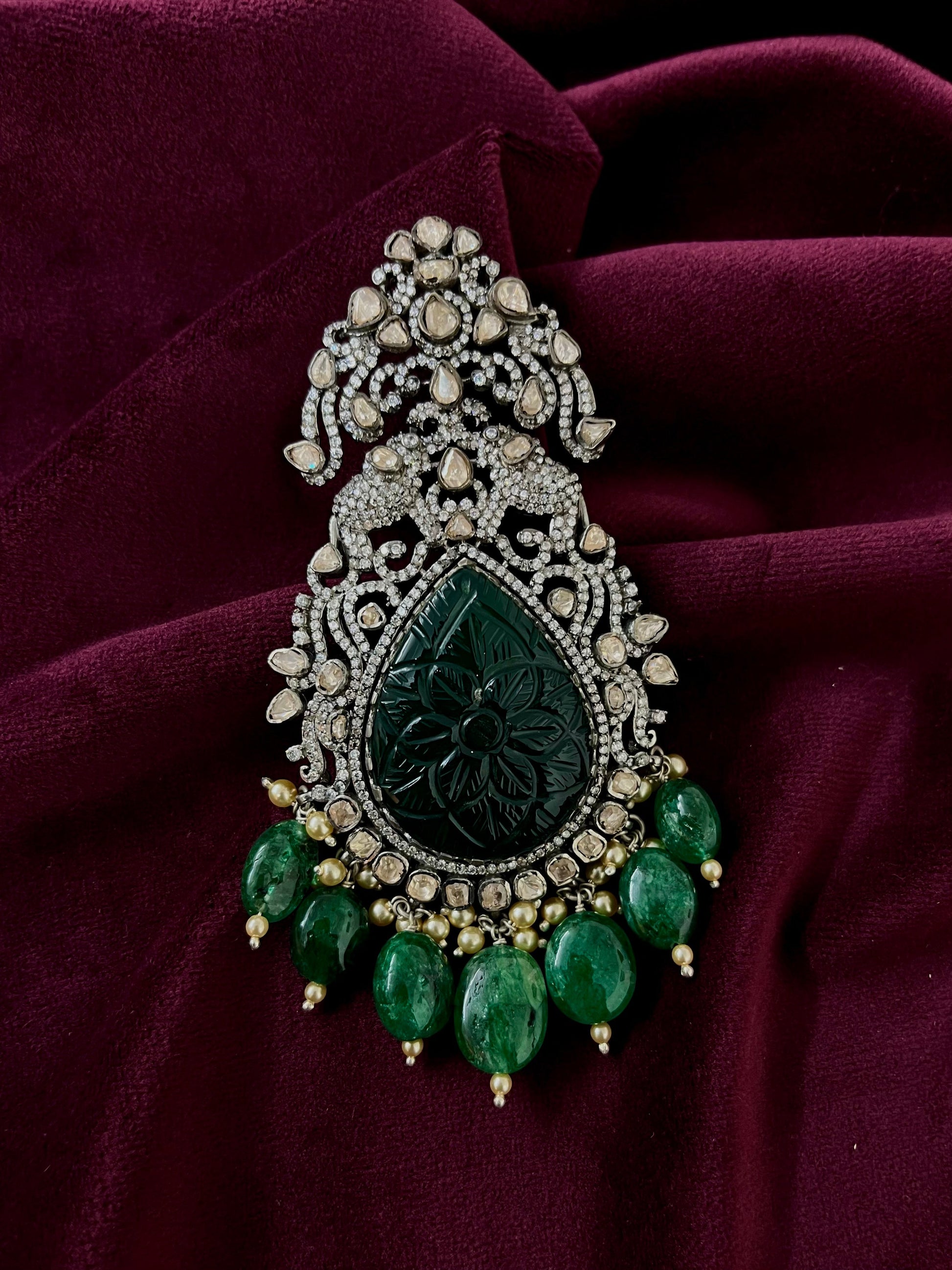 Silver 92.5 Moissanite Pendant with Precious & Semi-Precious Beads Hanging & with 92.5 marking