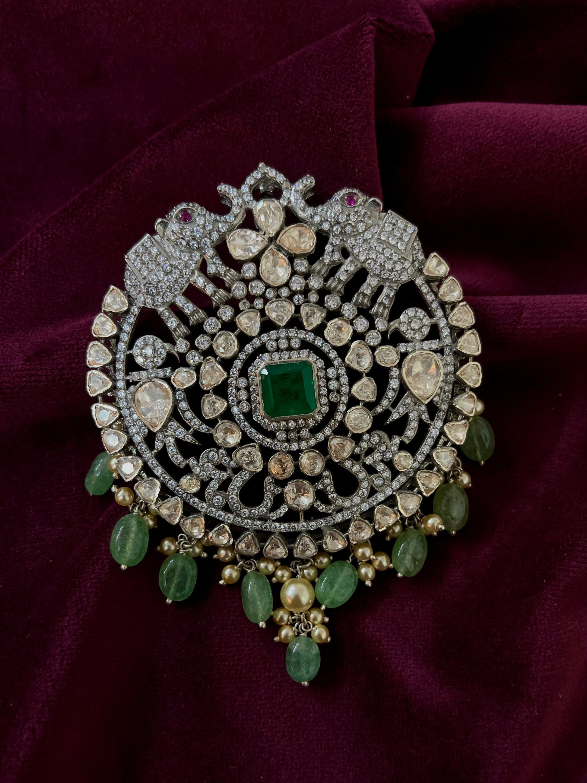 Silver 92.5 Moissanite Pendant with Precious & Semi-Precious Beads Hanging & with 92.5 marking