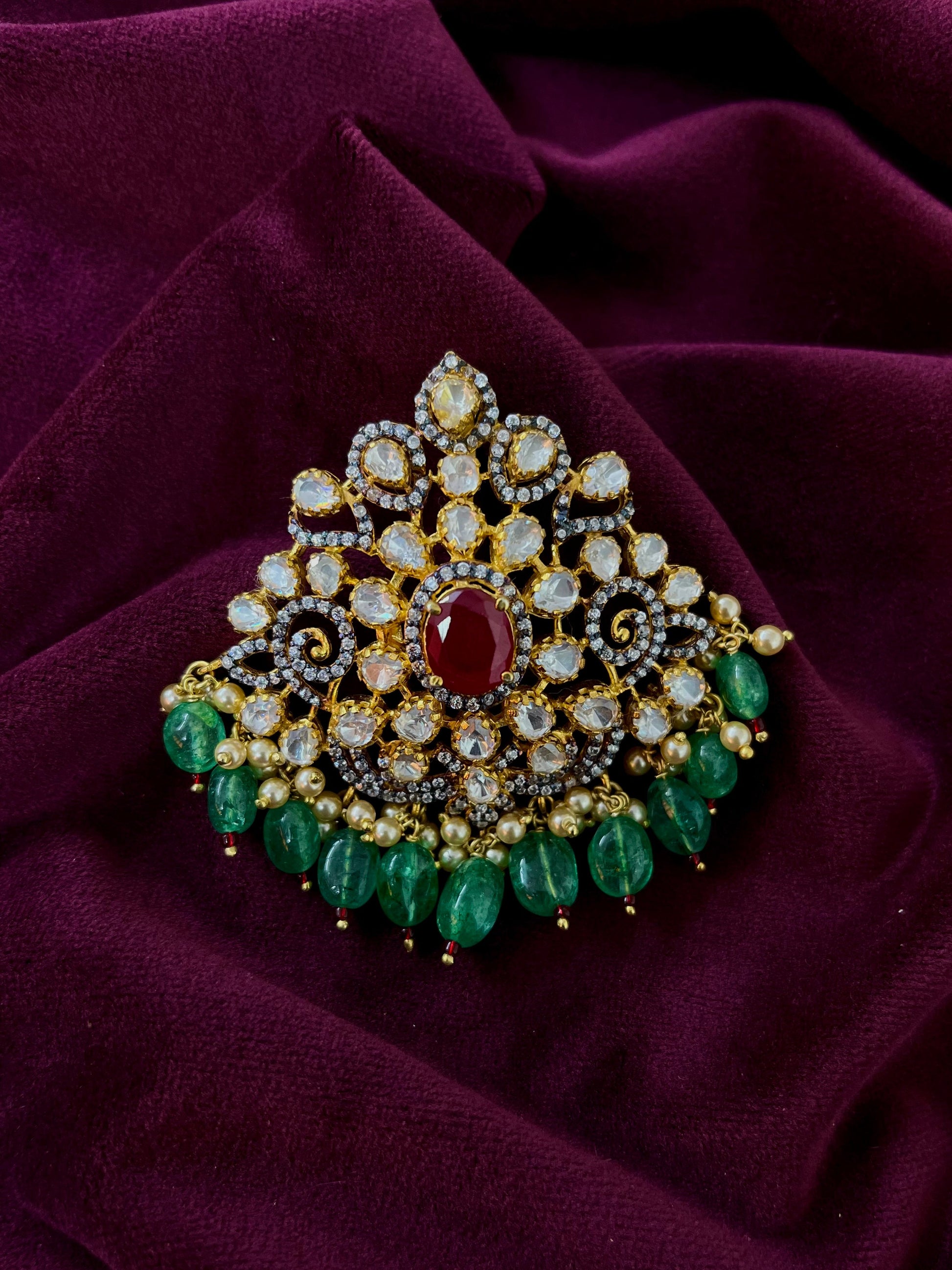 Silver 92.5 Moissanite Pendant with Precious & Semi-Precious Beads Hanging & with 92.5 marking