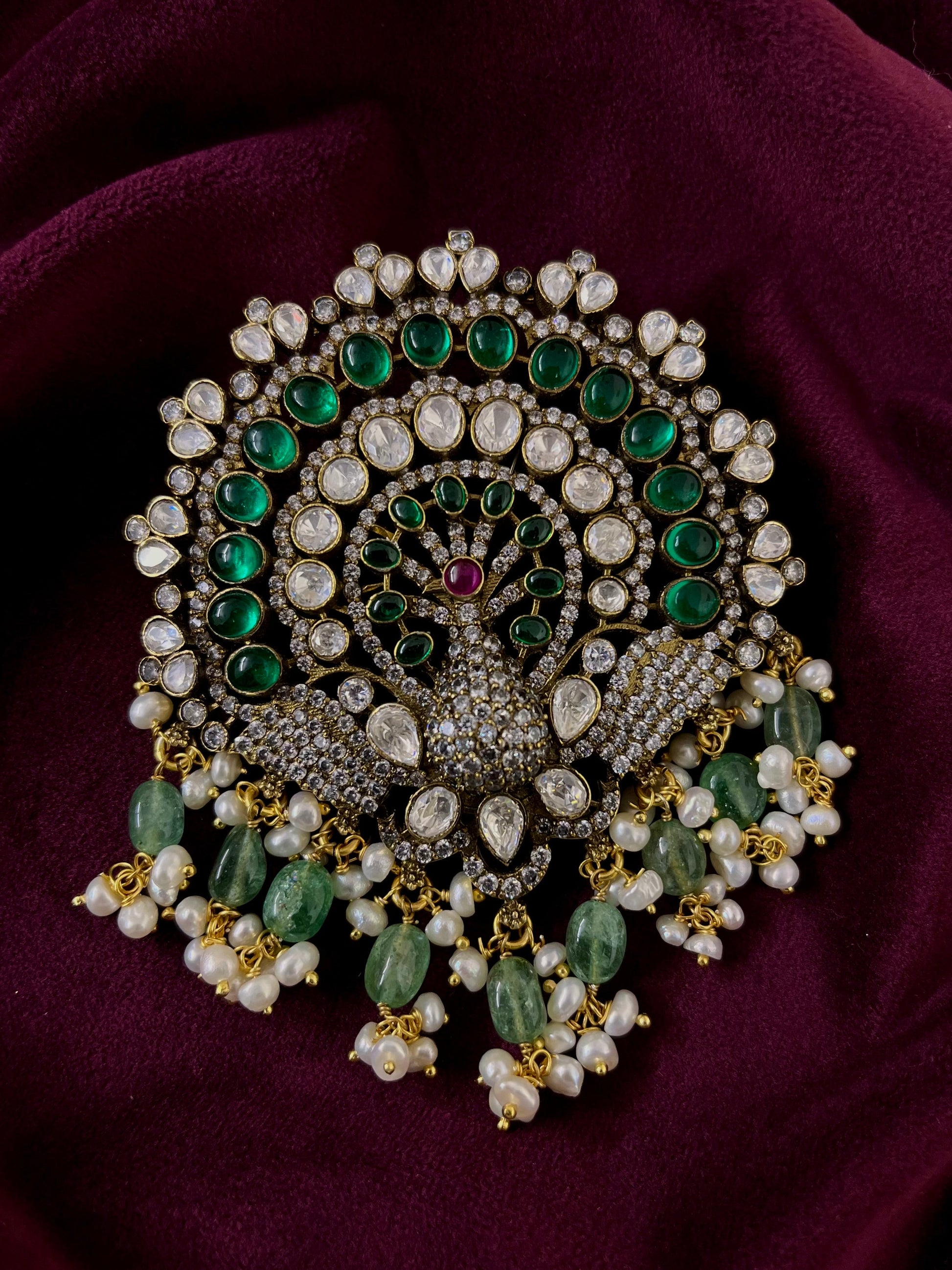 Silver 92.5 Moissanite Pendant with Precious & Semi-Precious Beads Hanging & with 92.5 marking