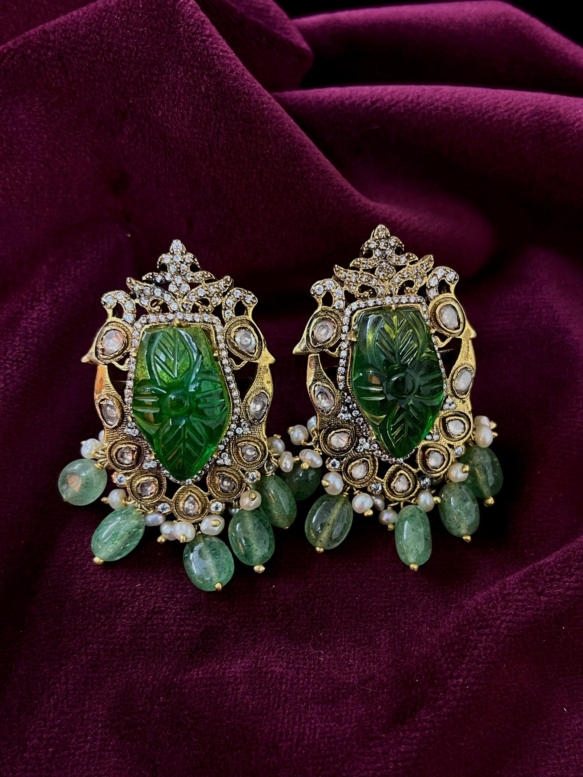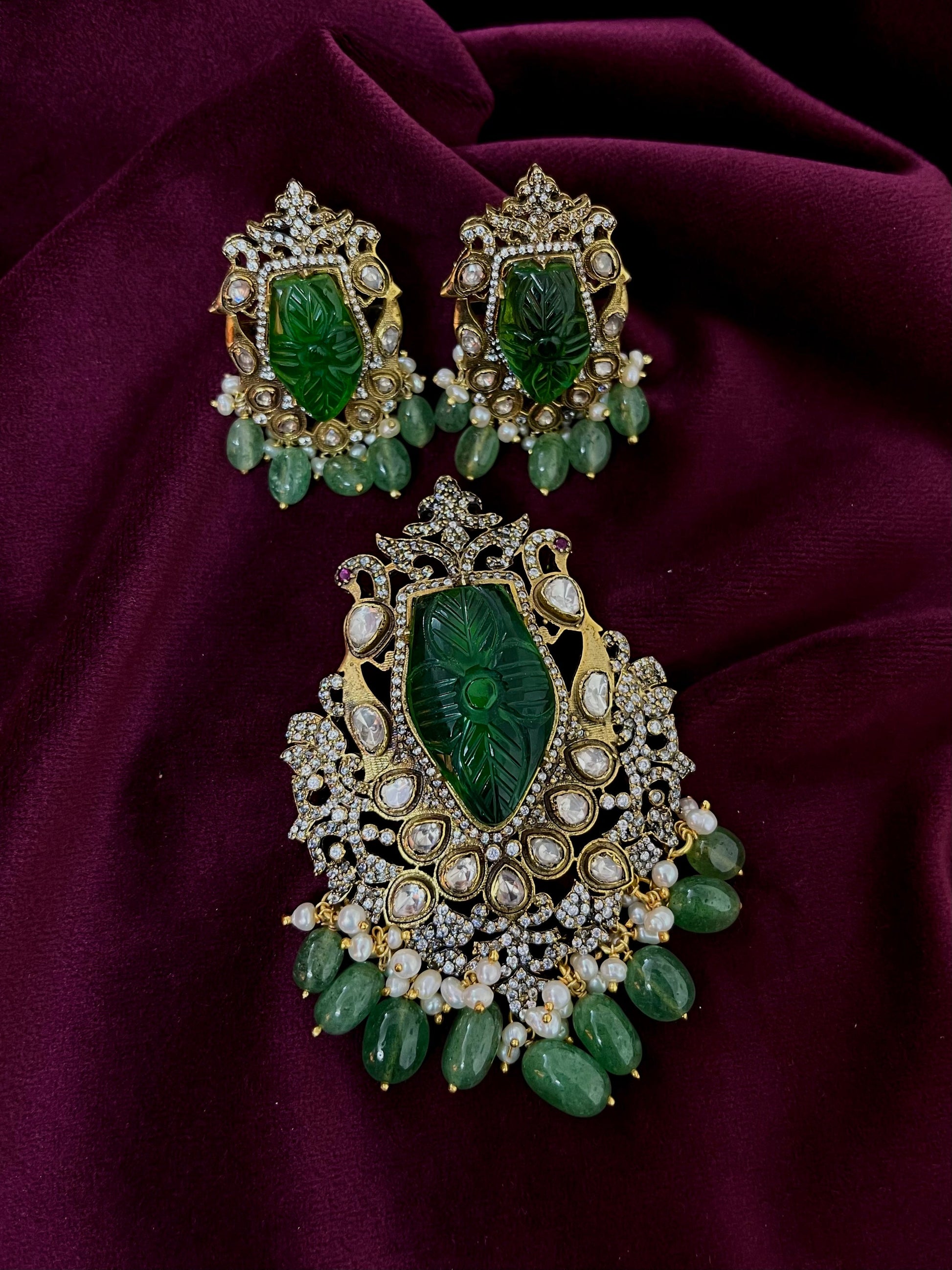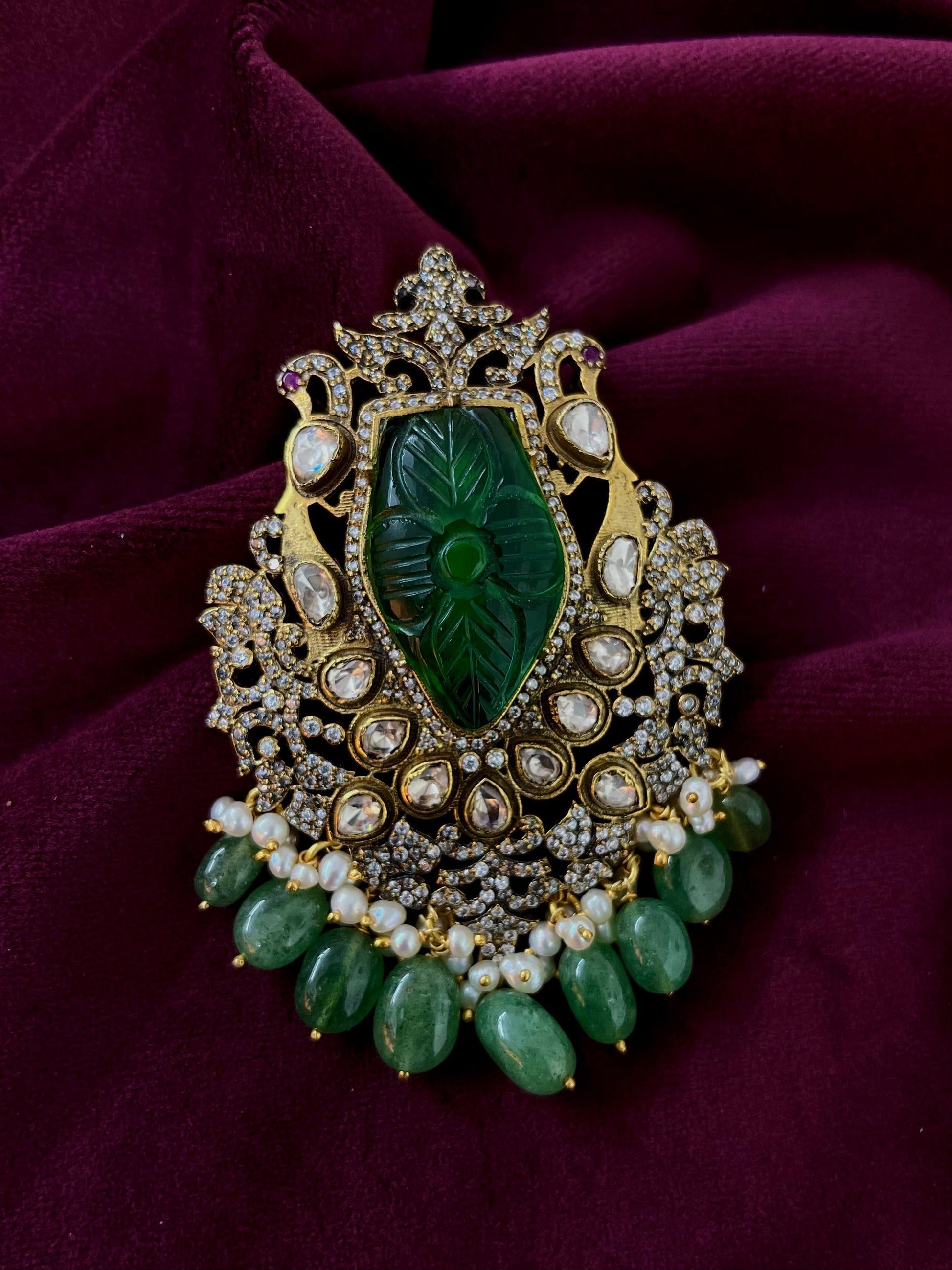 Silver 92.5 Moissanite Pendant Set with Precious & Semi-Precious Beads Hanging & with 92.5 marking