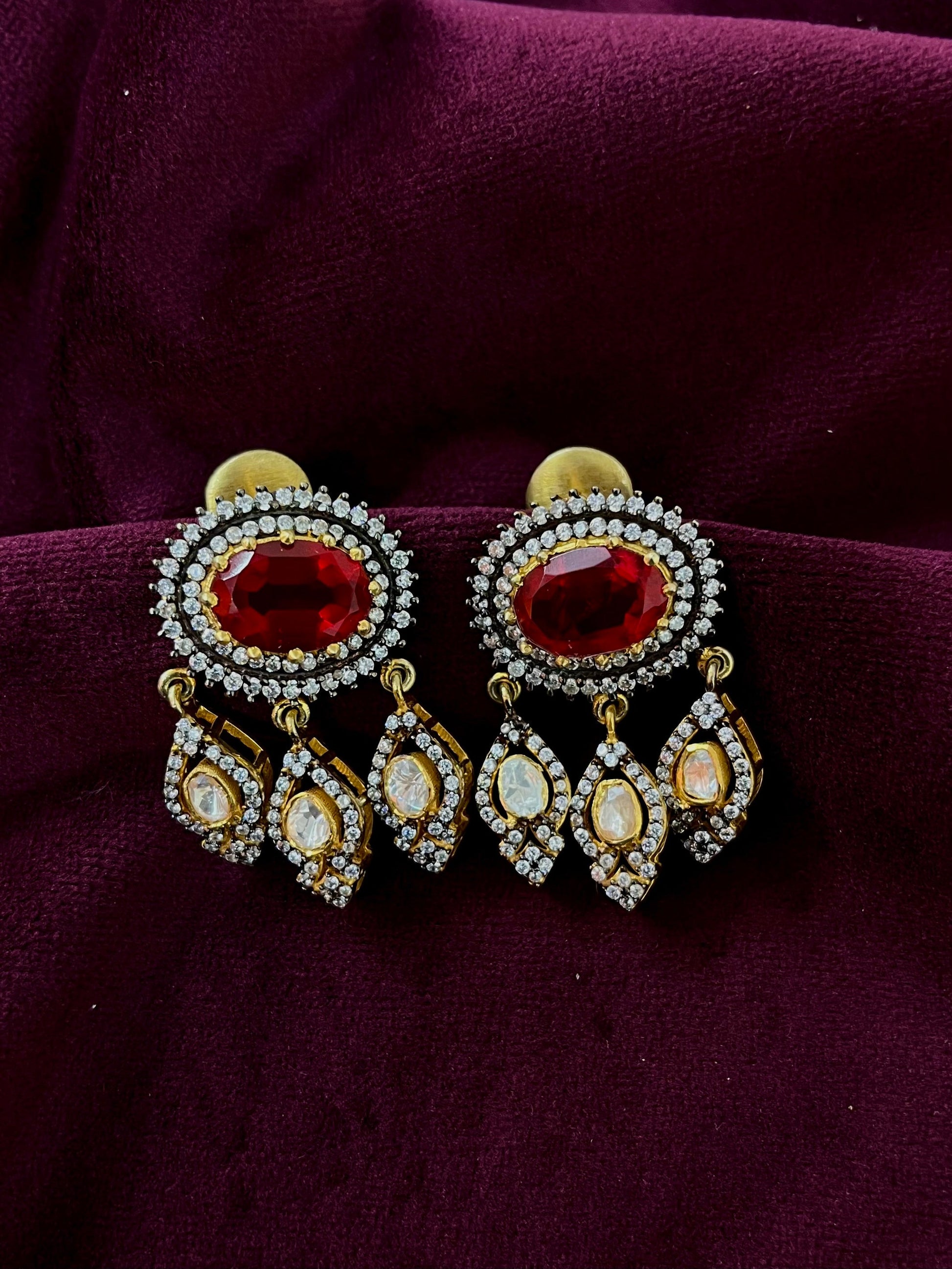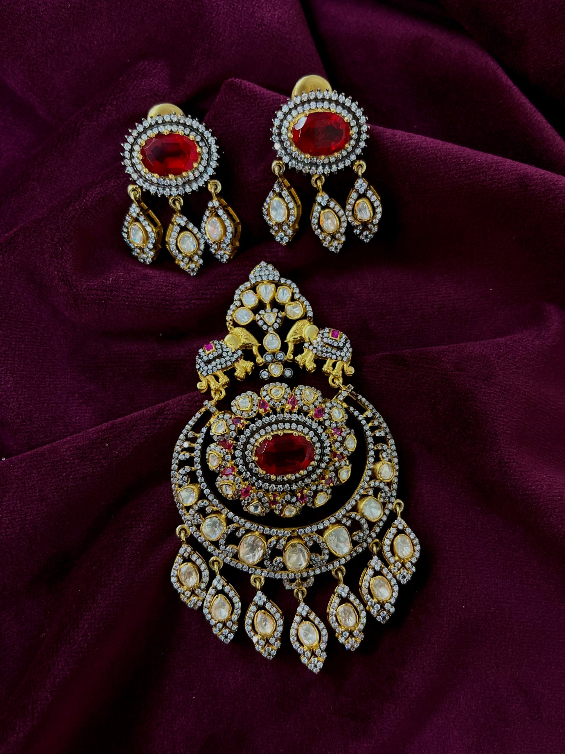 Silver 92.5 Moissanite Pendant Set with Precious & Semi-Precious Beads Hanging & with 92.5 marking